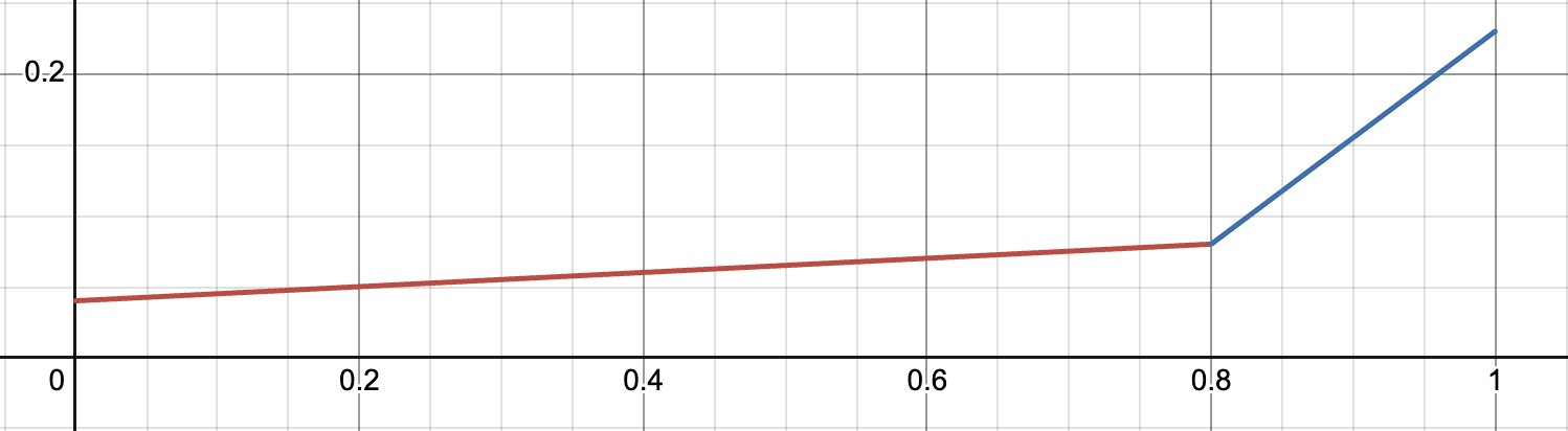 * 90% Utilization Rate = 15% Interest Rate <- *notice how the interest rate increases at a much faster rate when the utilization rate passes the kink*